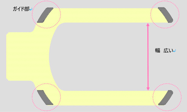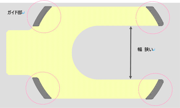 中央部の幅を広くした場合、ウエハを支える4箇所のガイド部の大きさが小さくなるので、