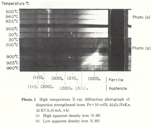 分散強化鉄の高温X線回折写真をPhoto.1に示す。